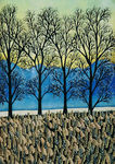 2003Kale bomen met 'zilveren' lente-accenten in de bomen.